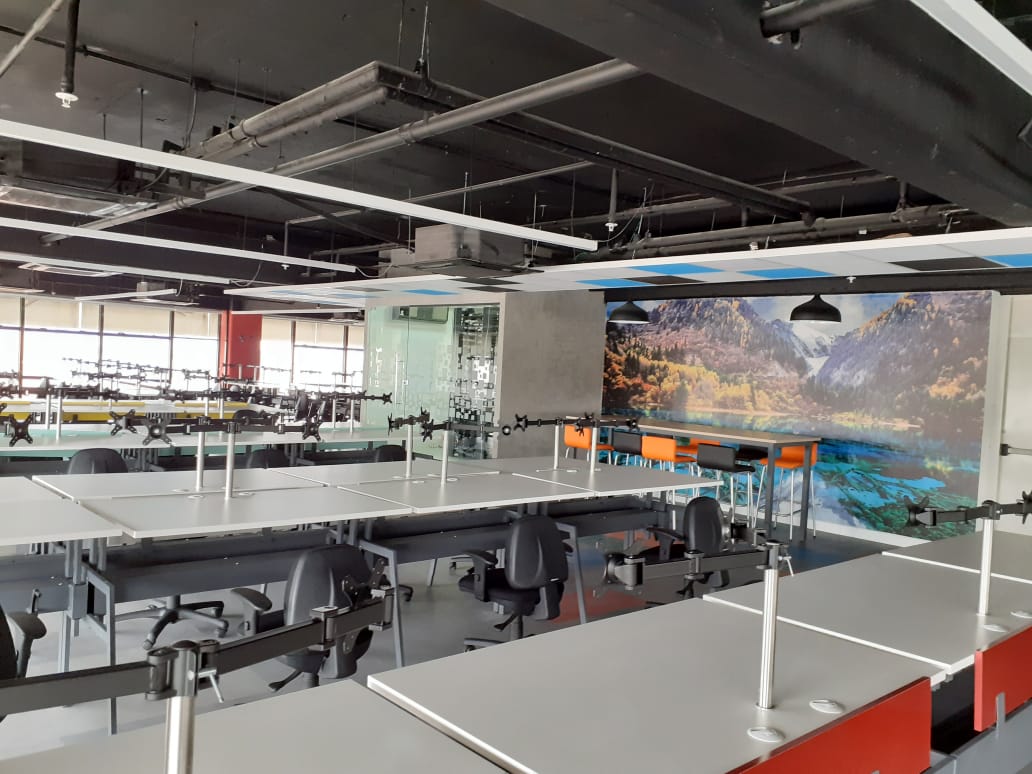 Contrato turn-key, contando desde o desenvolvimento do projeto até o acompanhamento e execução de toda a obra. O escopo inclui demolição, paredes de drywall e divisórias, infraestrutura, instalações elétricas e hidráulicas, cabeamento estruturado, forro e pintura. Além disso, também há instalação de piso, ar condicionado, CFTV, PCI e fornecimento de todo mobiliário necessário.