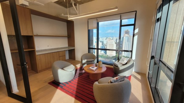 O layout do espaço foi alterado para atender os novos objetivos, de acordo com a necessidade do cliente. Foram executados serviços de demolição, drywall, pintura, infraestrutura, instalações elétricas e de cabeamento, troca de pisos e readequação do sistema de climatização